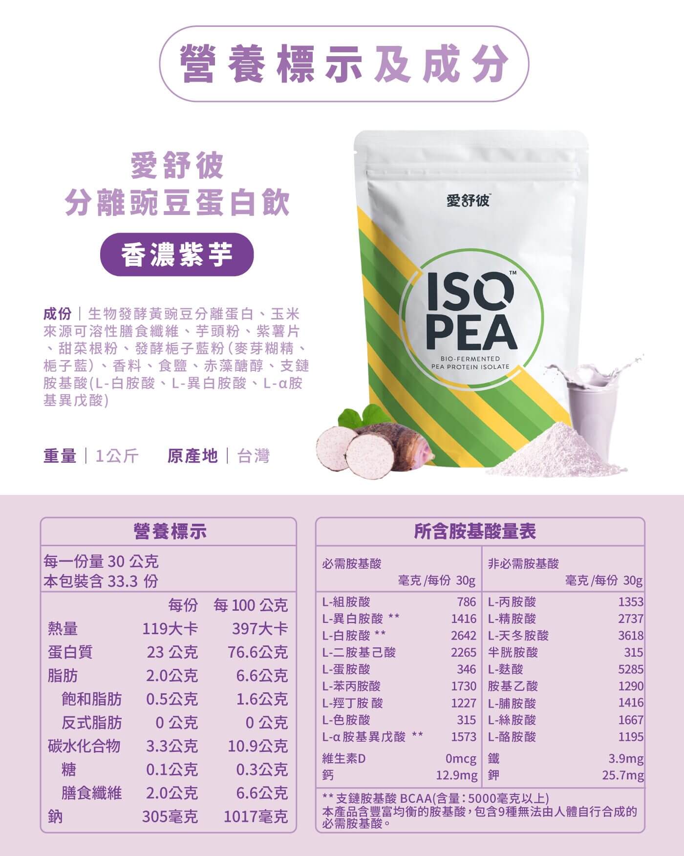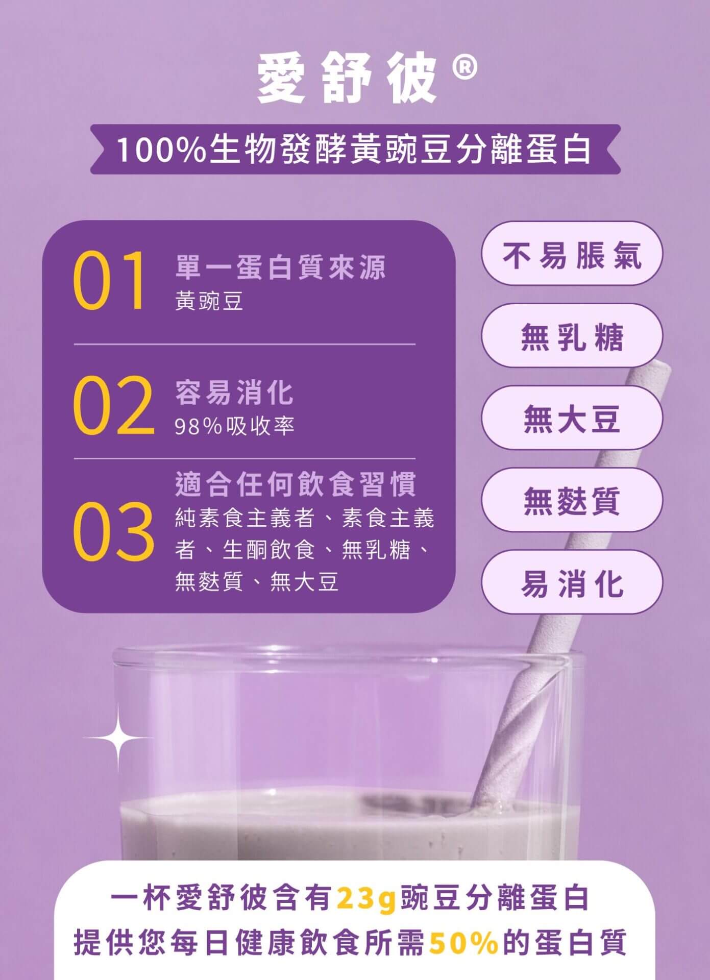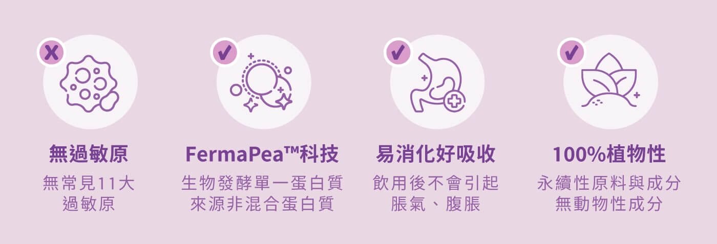 100%無過敏原生物發酵黃豌豆分離蛋白,讓你放心享用!