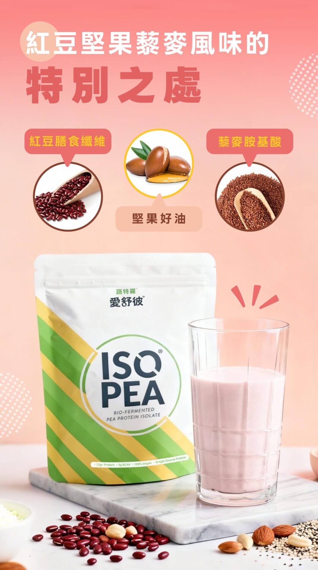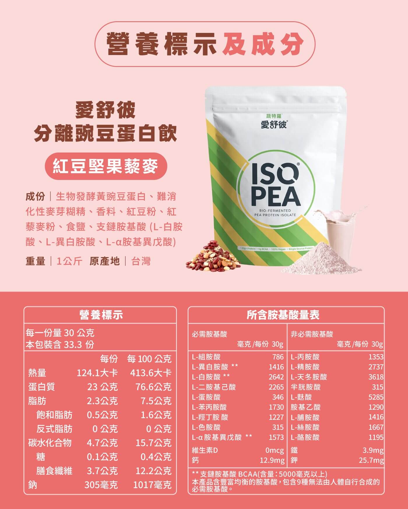 🌰 使用FermaPea™科技,採用生物發酵單一蛋白質來源